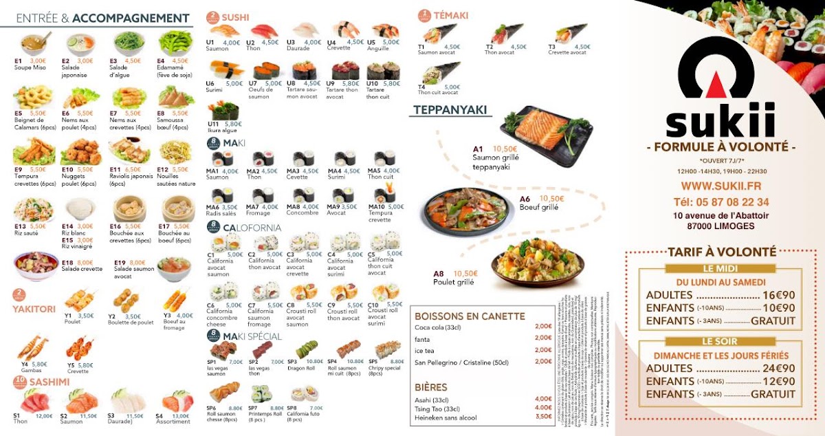 Welcome to Sukii, a culinary gem nestled in Limoges, France, where traditional Japanese flavors come to life. This restaurant offers an innovative dining concept, allowing patrons to order via a tablet, ensuring a seamless experience. Customers rave about the extensive menu selection, ranging from meticulously crafted sushi to savory grilled chicken skewers and delightful stir-fried noodles.